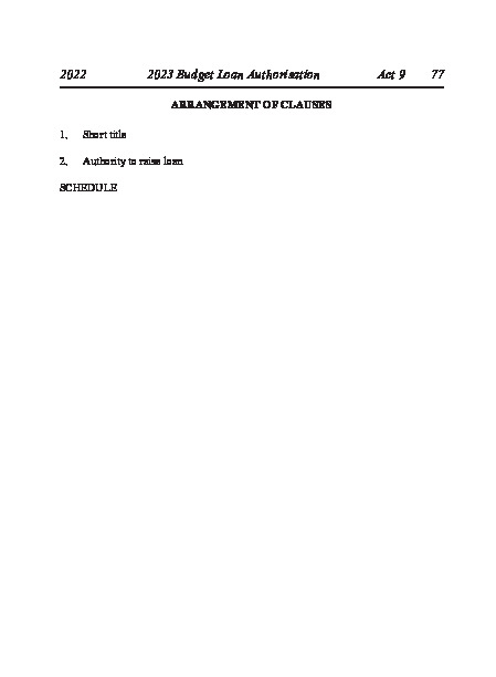 Act No 9 of 2022 2023 Budget Loan Authorisation Act, 2022