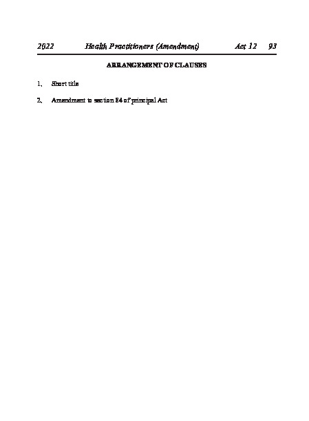 Act No 12 of 2022 Health Practitioners (Amendment) Act, 2022