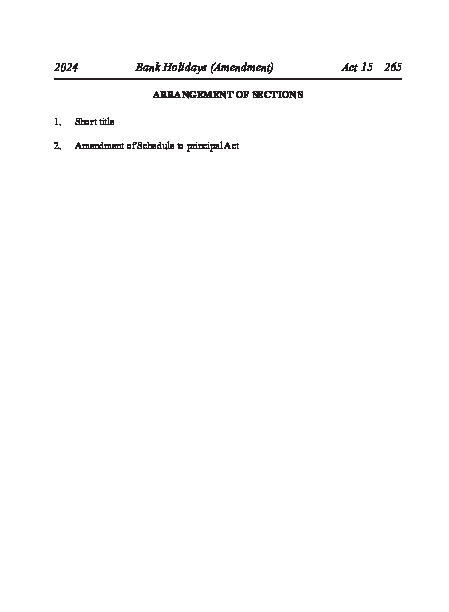Act 15 of 2024 Bank Holidays (Amendment) Act, 2024