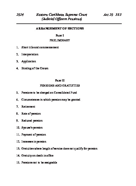 Act 20 of 2024 Eastern Caribbean Supreme Court (Judicial Officers Pensions)