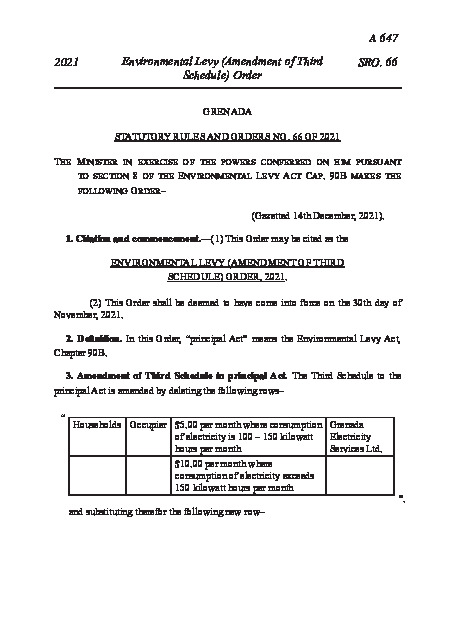SR&O 66 of 2021 Environmental Levy (Amendment of Third Schedule) Order, 2021