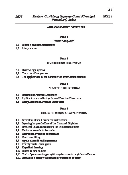 SR&O 1 of 2026 Eastern Caribbean Supreme Court (Criminal Procedure) Rules, 2026
